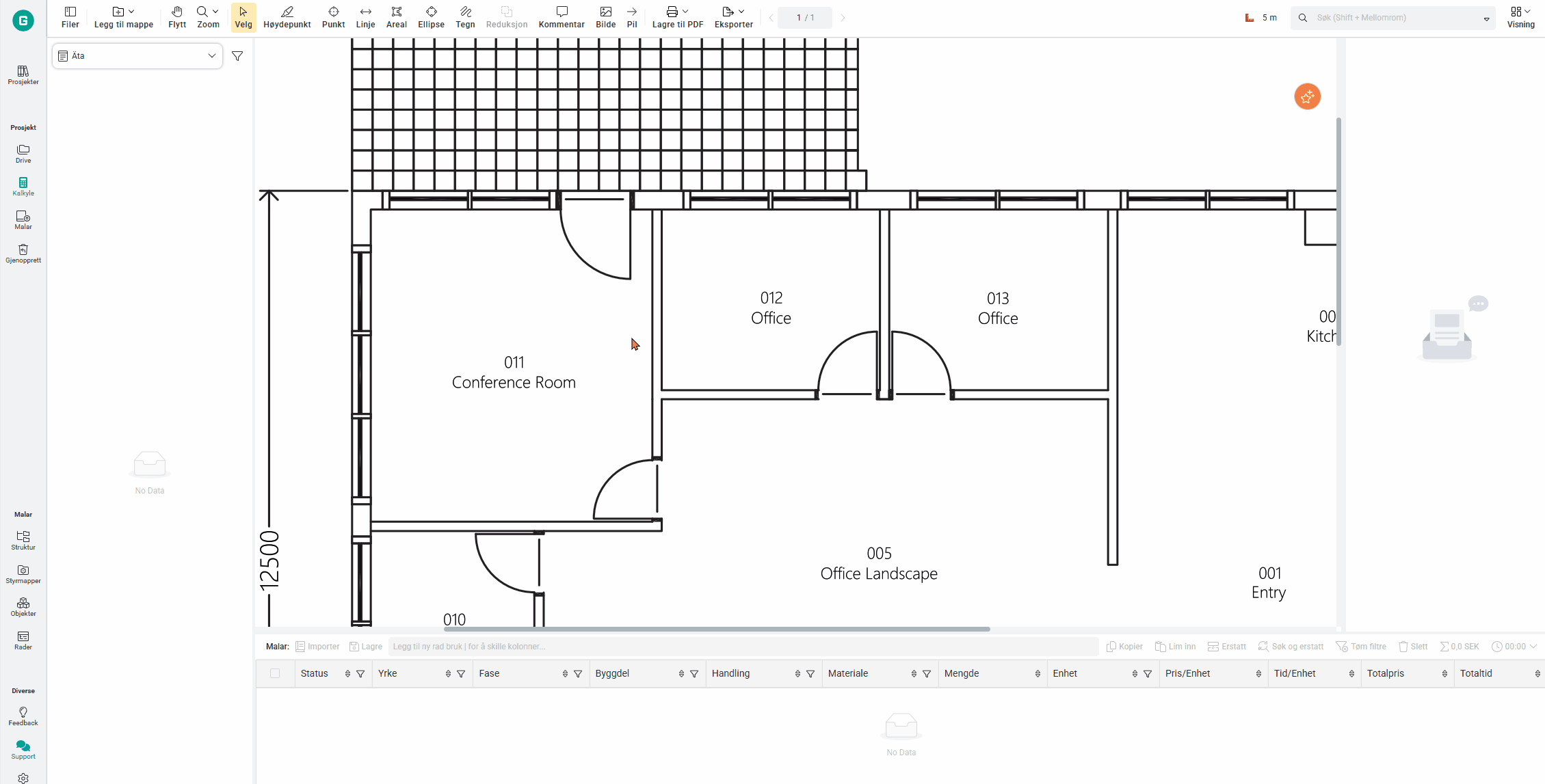 En ny markeringspenn lar deg beskrive eller fremheve informasjon direkte på en måling eller i kalkylerader. Markeringene vises i kalkyltre.