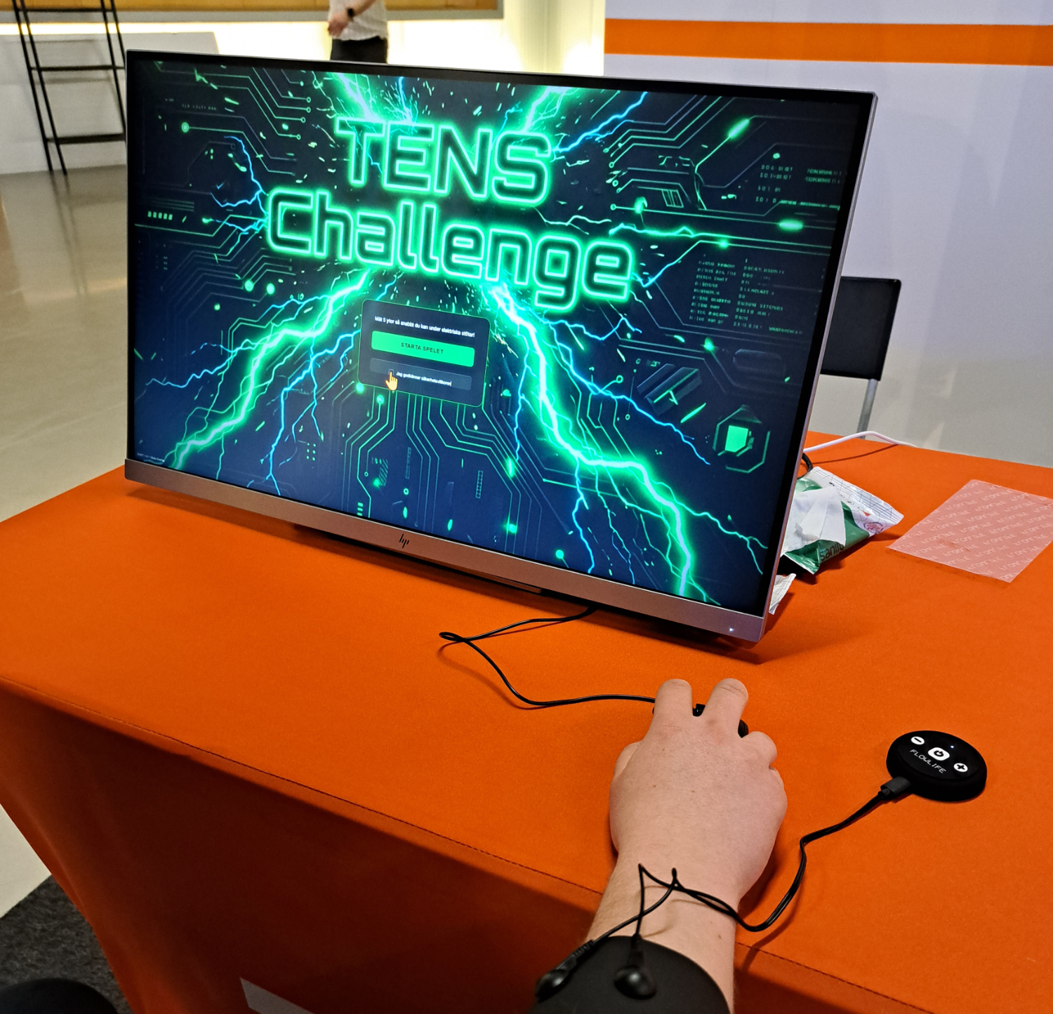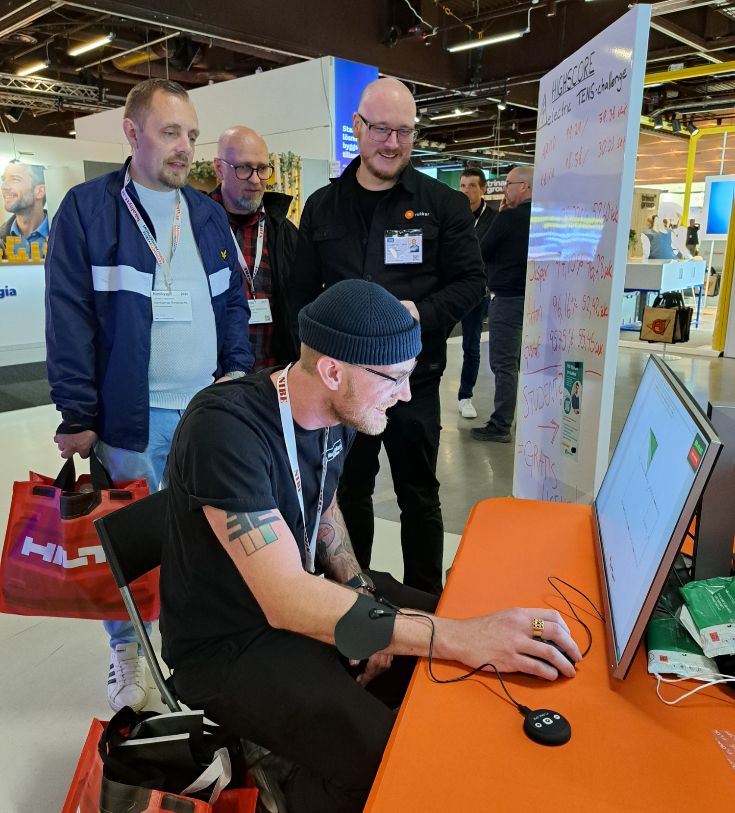 This time, we challenged visitors with a slightly unusual competition. The task was to measure three rooms in our takeoff software Geometra – while wearing a TENS device on the arm causing muscle contractions.